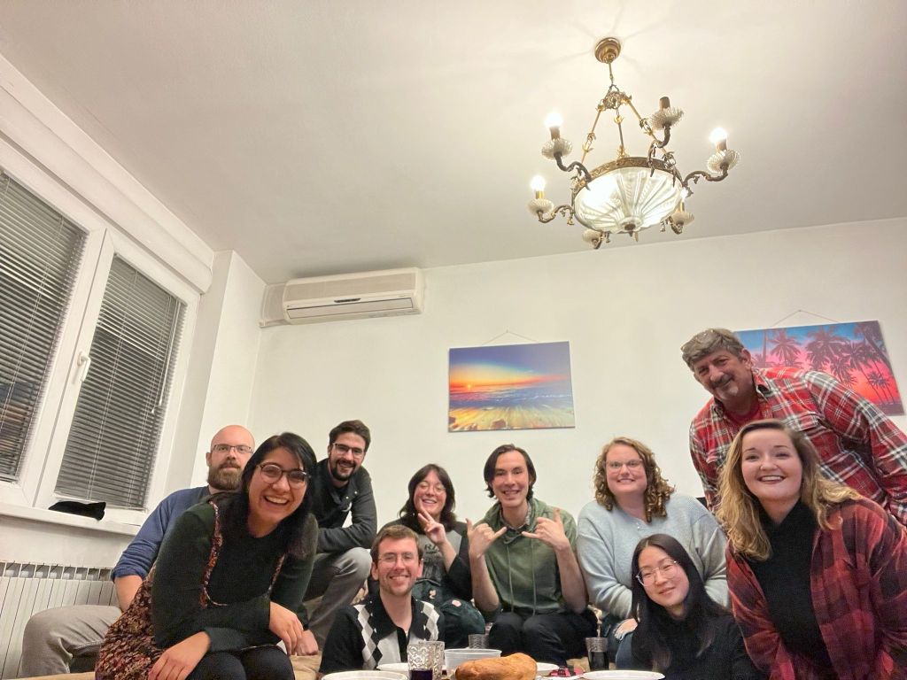 Once we all arrived in Skopje, our group gathered together at two rental houses. It was great to celebrate Thanksgiving together with my new friends. Everyone brought a dish (except for meβ¦I made the reservations and brought the wine π). We had turkey, mashed potatoes, carrots, mac nβ cheese, Korean pancakes, and pumpkin pie. It was great to catch up since we had not seen each other for a couple of weeks. The following day we all met up for language instruction and technical training and headed back to our assignments.
